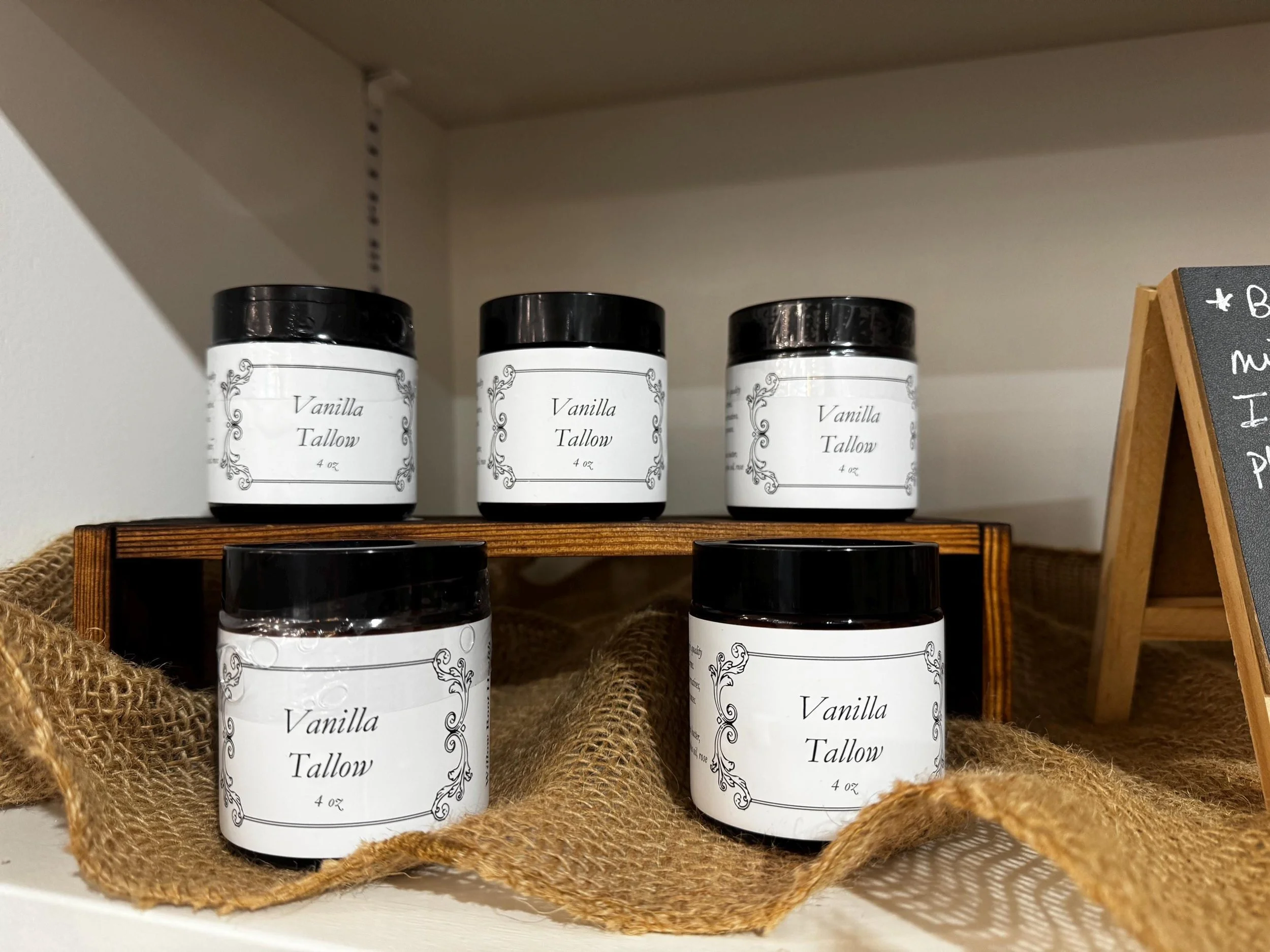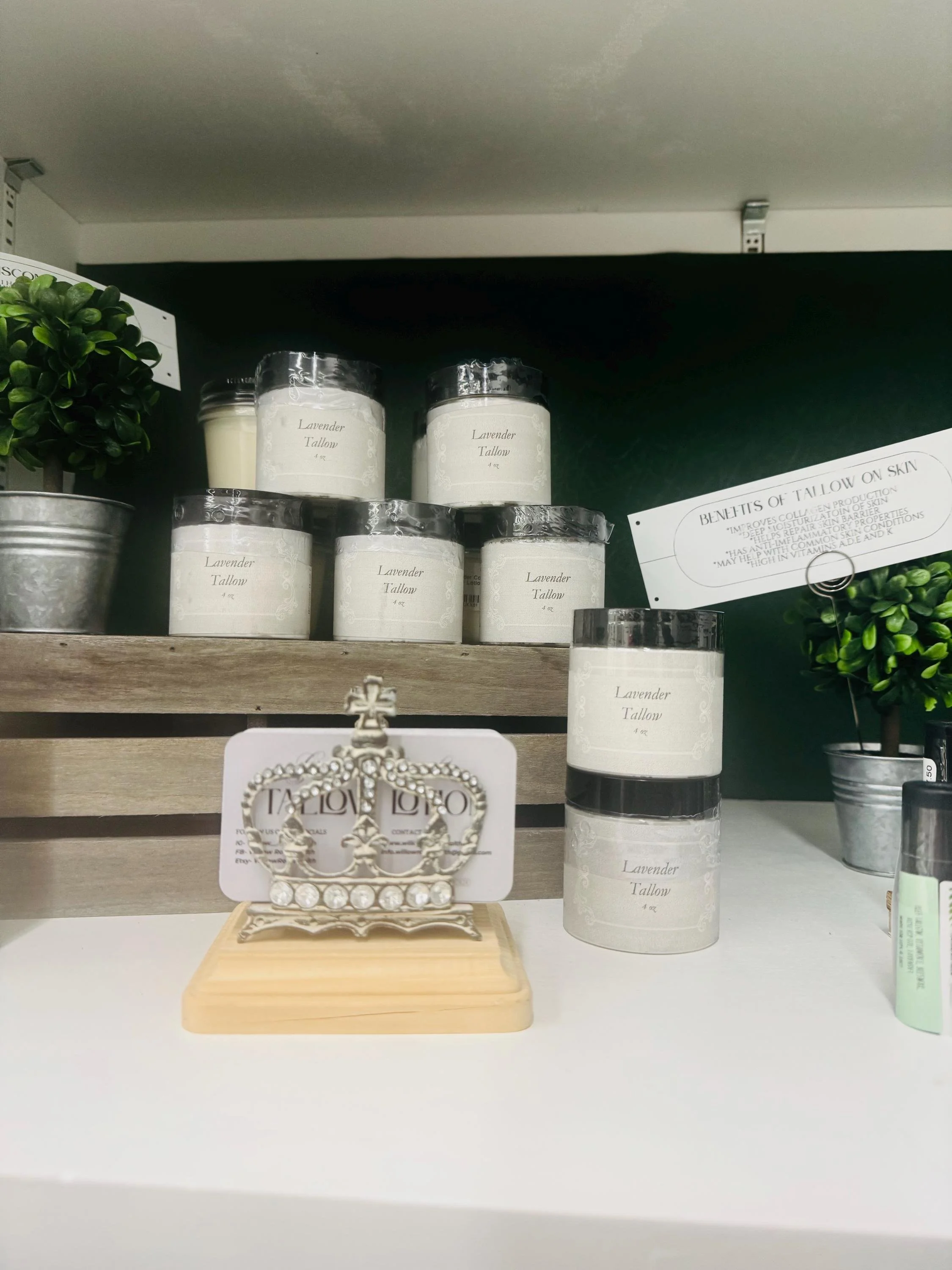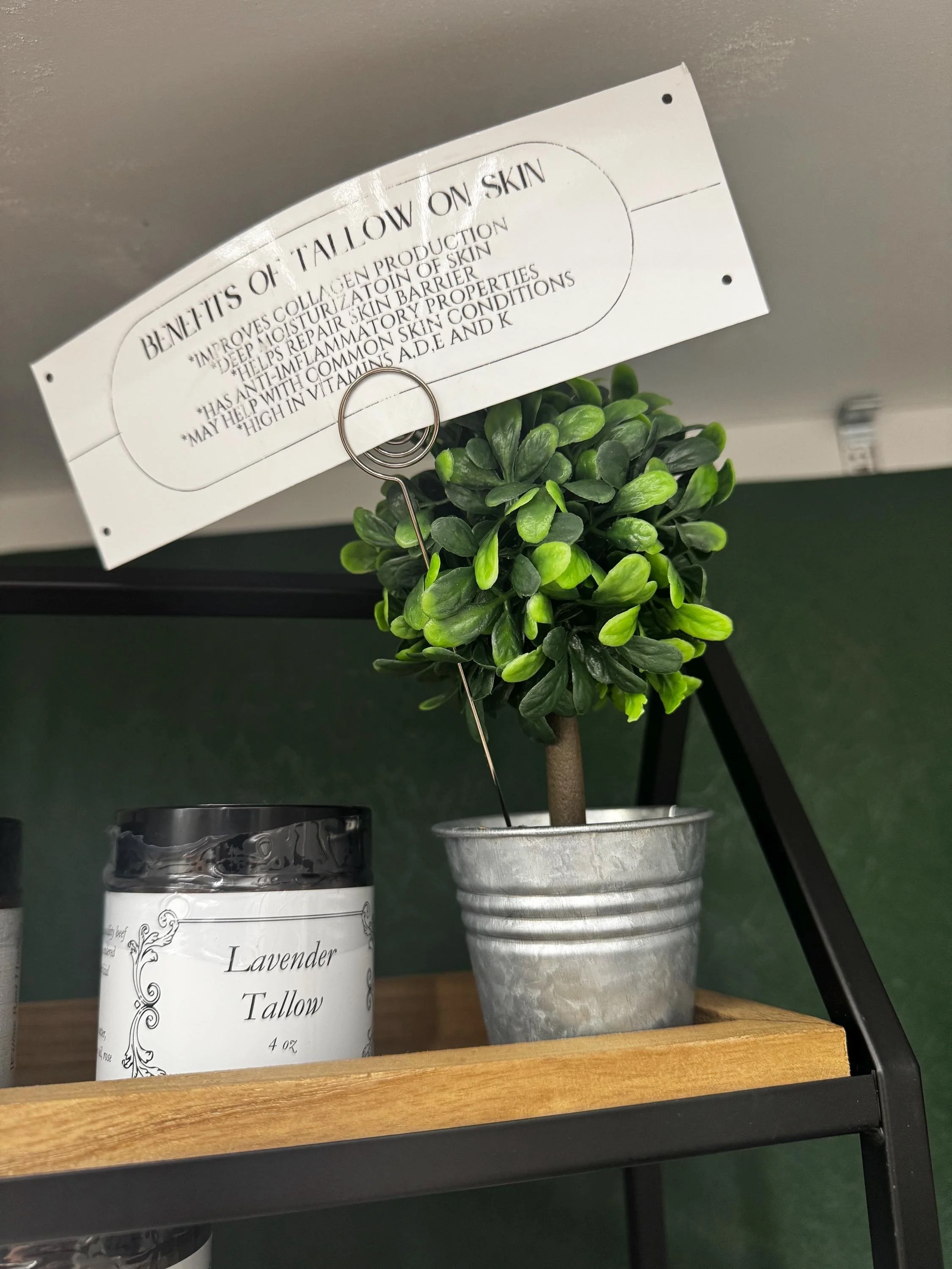 Store Store Watermelon Coconut Body Butter $18.00 Strawberry Vanilla Body Butter $18.00 Natural Beard Oil, Jojoba, Tea Tree & Pine Oils $12.00 Magnesium Tallow Balm $17.00 Magnesium Spray, Magnesium, Body Spray, Magnesium Chloride Spray, Better Sleep, Sore Muscle Spray $15.00 Olive Oil Tallow $17.00 Vanilla Tallow Lotion $17.00 Sensitive Skin Tallow $10.00 Lavender Tallow Lotion $17.00 All Natural Face & Body Oil $12.00